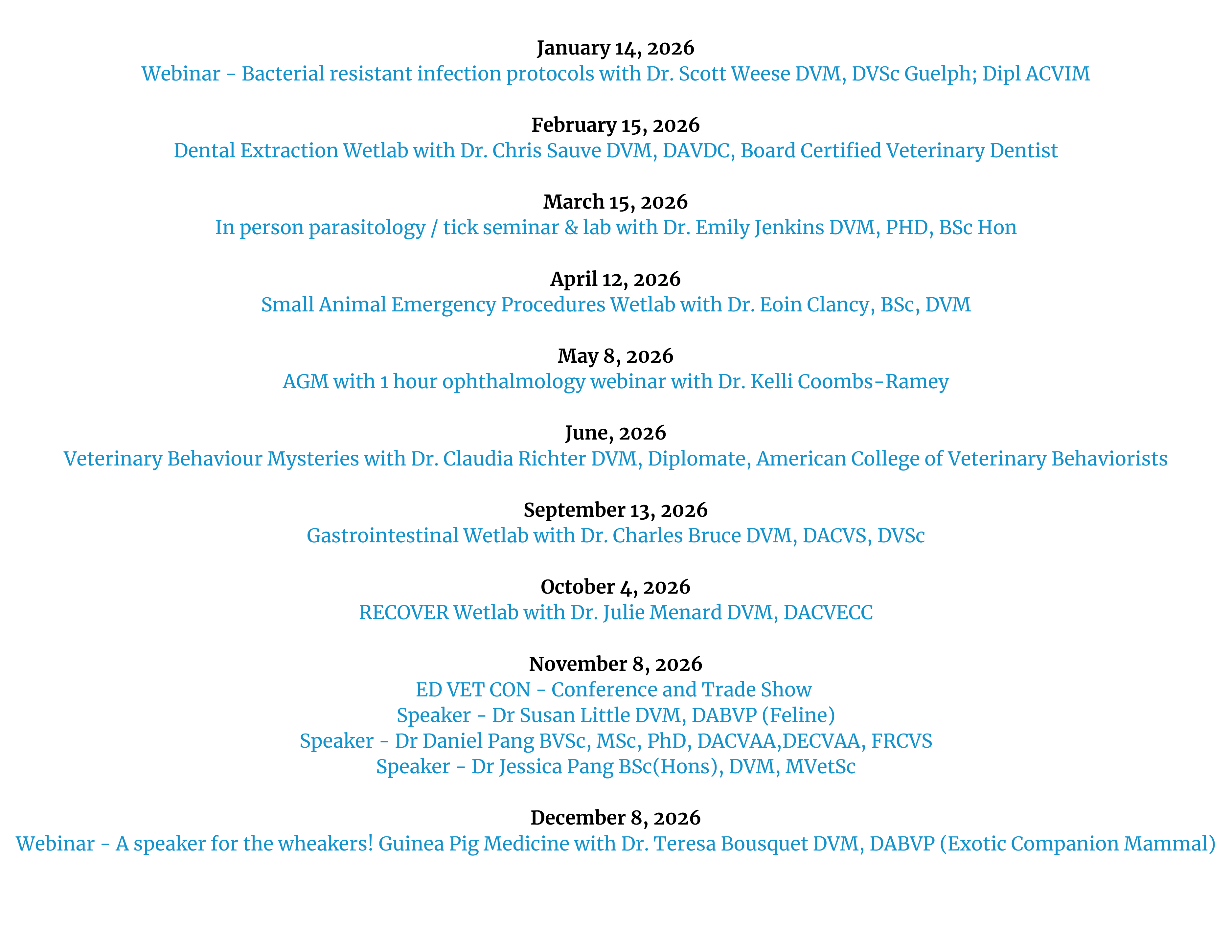 "Extraction lab for the Beginner" Dental Cadaver Wetlab There is a prerequisite for this course. Once registration and payment are complete you will be sent a link with your prerequisite course material. The prerequisite course is ABVMA and CVBC approved for 3 hours of CE credit. Location: NAIT In this hands-on introduction to tooth extractions, we will work through the basic steps for successful tooth extraction. This includes mucogingival flap creation and elevation, buccal bone removal, tooth sectioning, luxation/elevation, alveoloplasty, periosteal release, and proper closing techniques. Cancellation Policy - Cancelling attendance to a wetlab will result in the forfeit of 100% of wetlab fees unless the attendant finds a replacement attendee. Jodymae Brown, RVT, EASAV Executive Assistant
